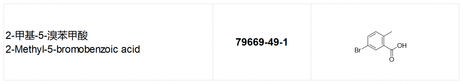 一、79669-49-1基本信息:2-甲基-5-溴苯甲酸、2-Methyl-5-bromobenzoic acid;