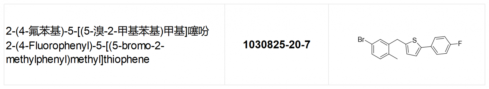 英文名稱:2-(5-Bromo-2-Methylbenzyl)-5-(4-fluorophenyl)thiophene