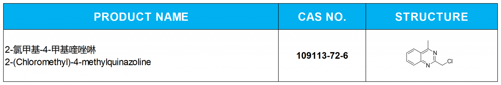中文名稱: 2-氯甲基-4-甲基喹唑啉