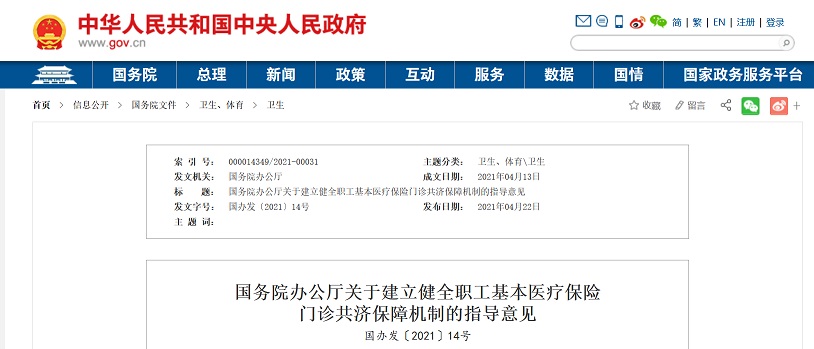 4月22日,國務院辦公廳發布關于建立健全職工基本醫療保險門診共濟保障機制的指導意見。