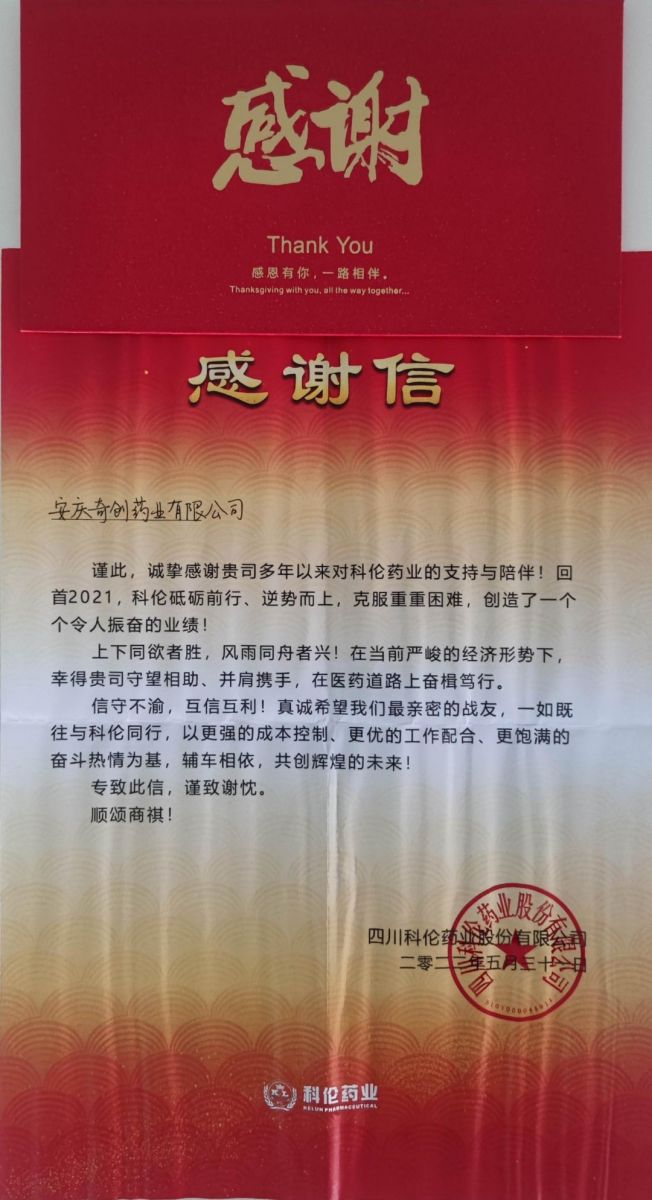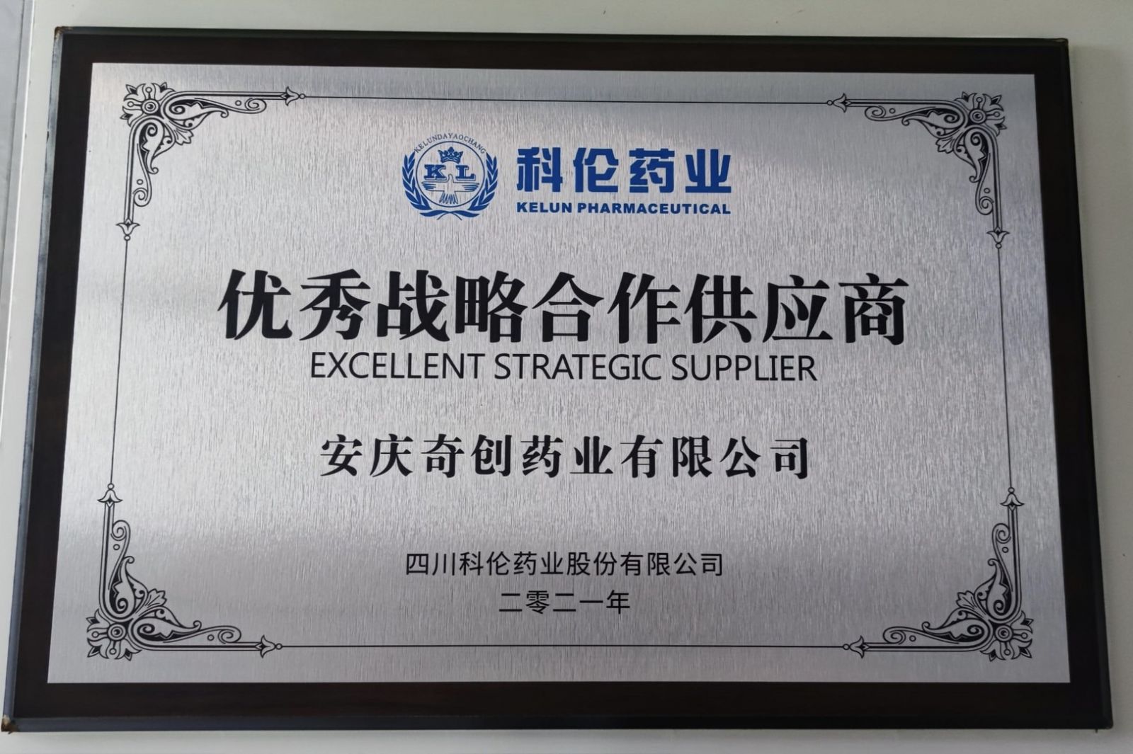 奇創(chuàng)藥業(yè)喜獲“科倫藥業(yè)2021年度優(yōu)秀戰(zhàn)略合作供應商”