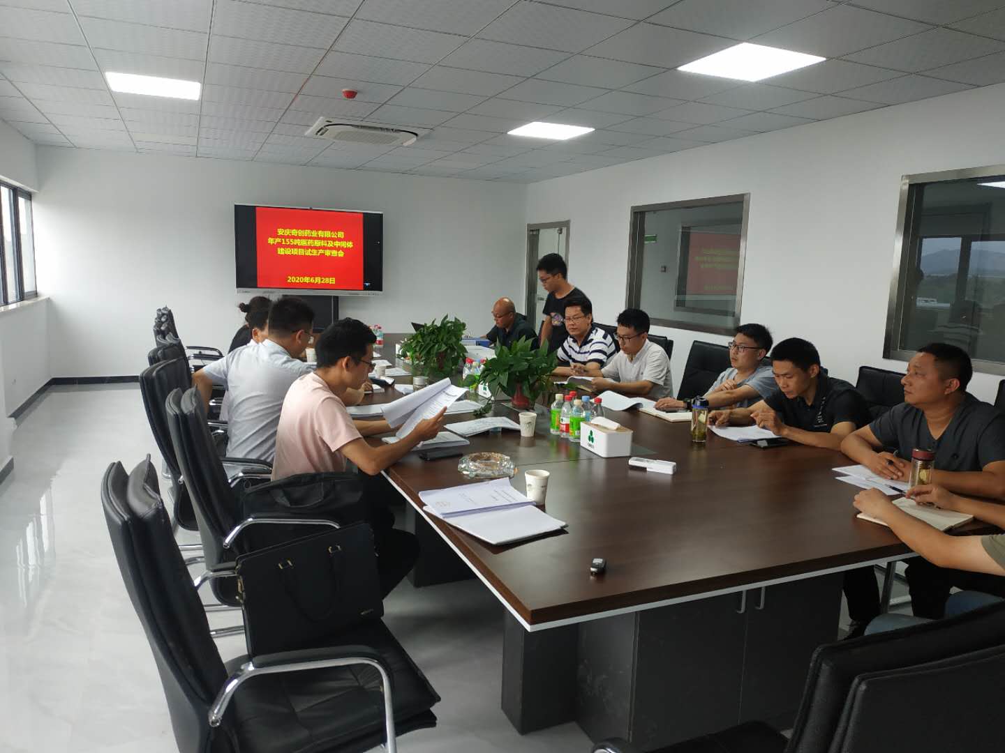 On June 28, a meeting for evaluating and demonstrating the trial production scheme of the 1st phase construction of the project - 155 tons annual production for pharmaceutical raw materials and intermediates was held and organized by Anqing Emergency Management Bureau.